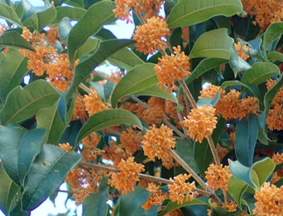 | 葉腋に橙黄色の小さい花を束生し、強い芳香がある。 | |
