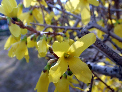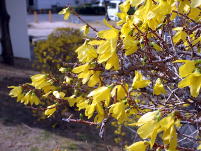 3/20 高浜町ではシナレンギョウの黄色い花が咲き出してきました。