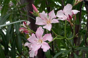 写真:キョウチクトウ(キョウチクトウ科) 芦屋川付近(松の内町) 2005/6/12撮影 6月になり、市内のキョウチクトウの花が咲き出しています。ここでは淡いピンク色の花です。 2002年〜2004年 6月 写真:カニクサ(カニクサ科) 芦屋川 2004/6/17撮影
