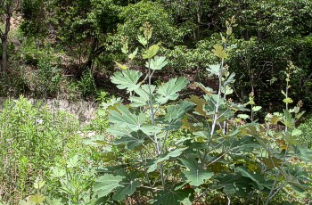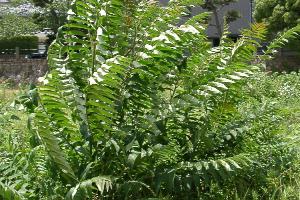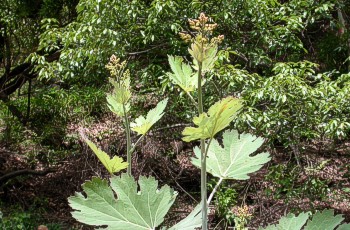 写真左:シンジュ(ニワウルシ)(ニガキ科) 芦屋川 2002/6/12撮影 写真右:オオブタクサ(キク科) 芦屋川 2002/6/12撮影