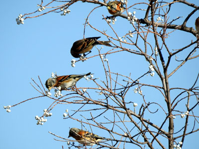 | ナンキンハゼの実(種子)を啄むアトリの群れ | |