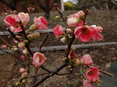 2/2 総合公園ではボケの花が咲き出していました。