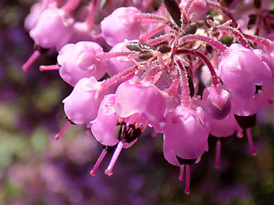 紫桃色の花が多数咲いていました。 花は鐘型、黒紫色の葯が目立っていました。 |