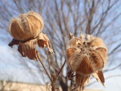 2/21 総合公園ではフヨウの果実が美しい形で残っていました。