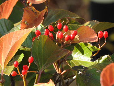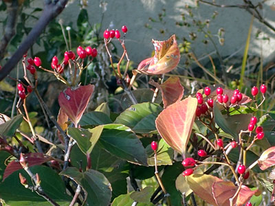 1/8 陽光町の教会の庭ではガマズミの赤い果実が目立っていました。