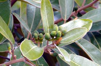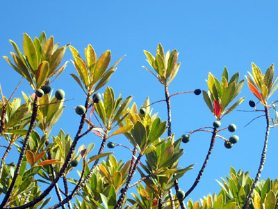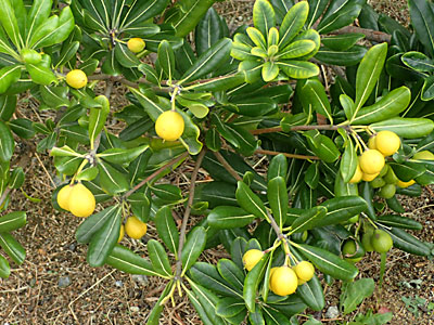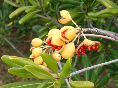 1/4 海洋緑道ではトベラの果実が裂けて赤い粘った種子がたくさん見られました。
