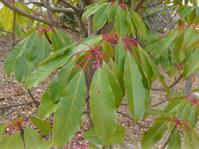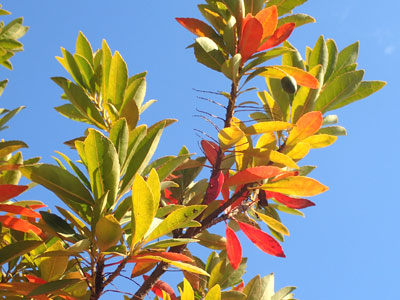 1/10 親水中央公園ではホルトノキの葉がいつも色鮮やかで美しいです。