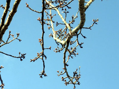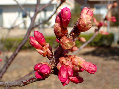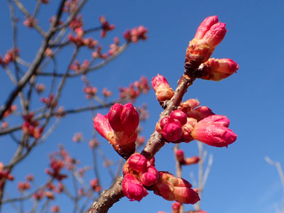 2/25 親水中央公園では早くもカンヒザクラの蕾が大きく膨らんできました。