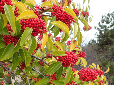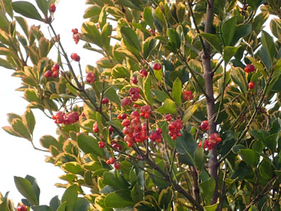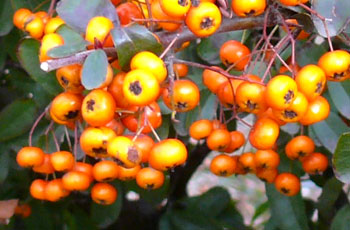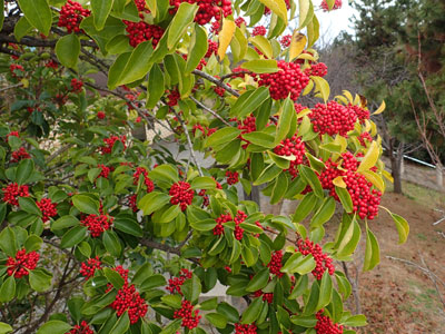 トキワサンザシの仲間をピラカンサと呼ぶことが多い。 |