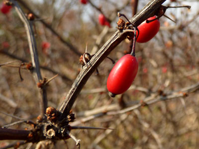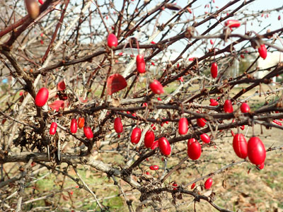 1/4 園内でメギに赤い果実が出来ていました。