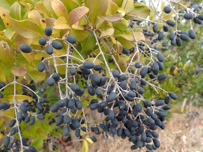 1/25 海洋町あるお家の生垣ではネズミモチの果実がたわわに実っていました。