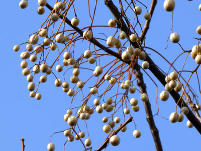 1/13 親水西公園ではセンダンの果実が青空に映えていました。