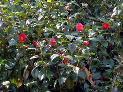 2/18 総合公園でヤブツバキの花が咲きだしていました。