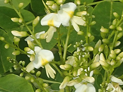 枝先に約30cmの円錐花序を出し黄白色の蝶形花をつける。 |