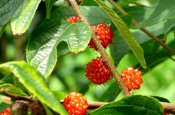 6/21 ビオトープ付近でヒメコウゾ、スモモの実が色づいてきました。