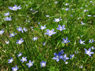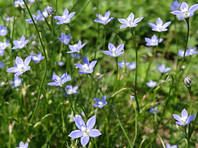 たくさん咲き出して涼しげなヒナギキョウ 花冠は淡紫色で5裂 |