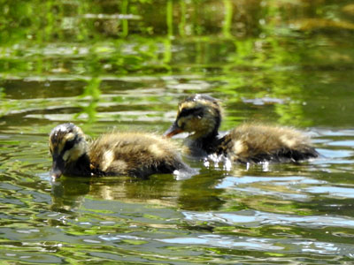 6/5 親水中央公園の水路では2組のカルガモ親子の姿がみられました。