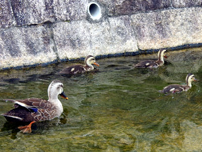 | 母カルガモと3羽の子カルガモの姿が見られました。 | |