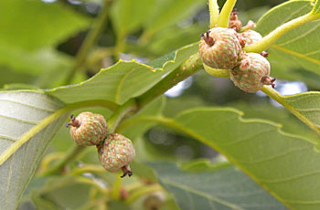 総合公園内でクヌギの赤ちゃんドングリ(若い堅果)を見ました。コナラの赤ちゃんドングリも。