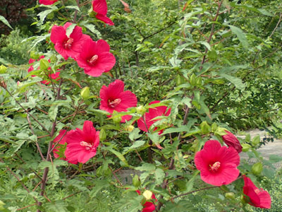 7/7 親水中央公園近くのお庭でムクゲの花が美しく咲き出していました。