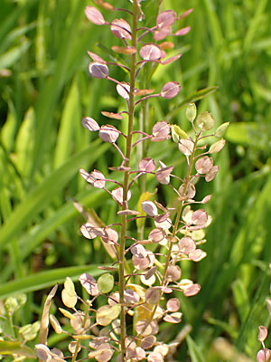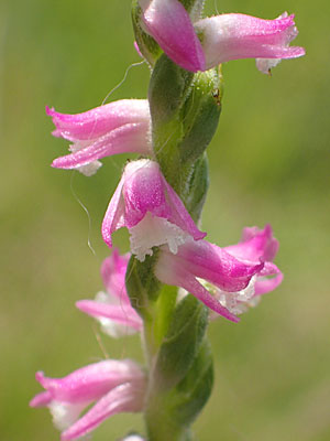 茎は高さ10〜30cm、径4〜5mmの淡紅色の花が 多数らせん形にならんでつく。 |