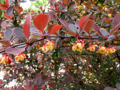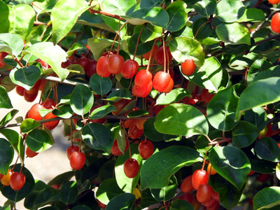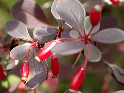 | メギの木に赤い小さい果実が出来ていました。 | |