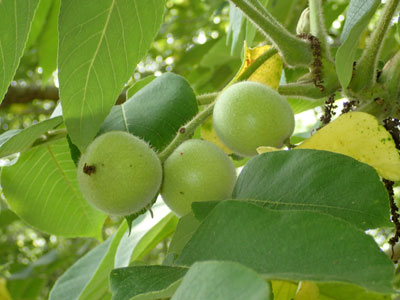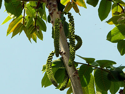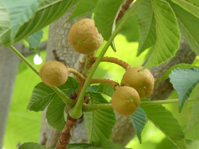6/23 総合公園内でオニグルミに若い果実が出来ているのに初めて気がつきました。