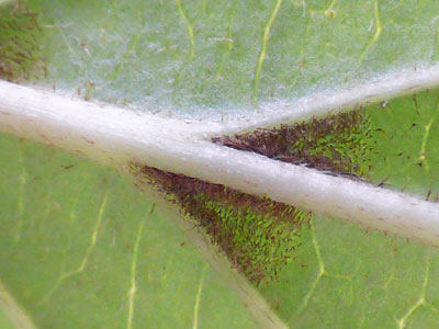 | 灰白色で表面に星状毛が密生している |
