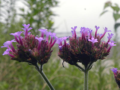 花は長さ1cmほどの筒型。花冠の先は5裂、 花冠の外側は白色、内部は暗赤色。 筒部の外側淡いピンク色、微細な毛が密生。 |
