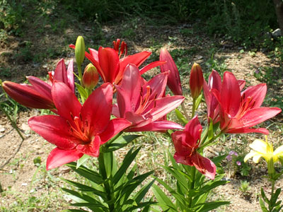 | 花は葉のわきに1こづつ付く。花弁4個、おしべ4、めしべ1、柱頭は4裂。 | |
