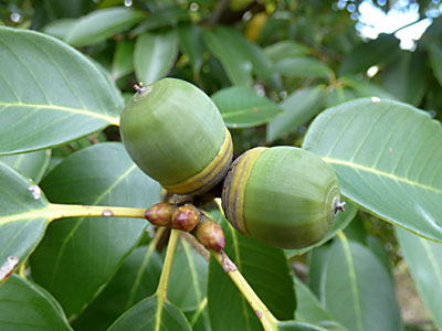 ドングリは樽型からすこし長い樽型。 ドングリ全体をロウ物質に被われている。 |
