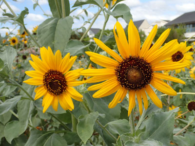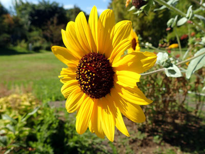 9/23 親水中央公園や総合公園の花壇では小さいヒマワリの花が咲き出していました。