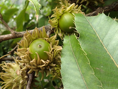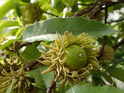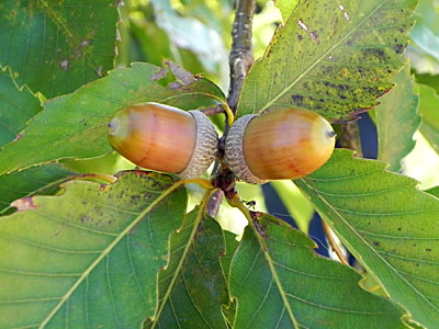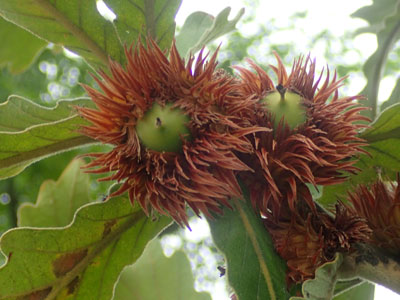 | ドングリ(堅果)は1年成り、殻斗(おわん)に 線形の鱗片がビッシリと付く。 | |
