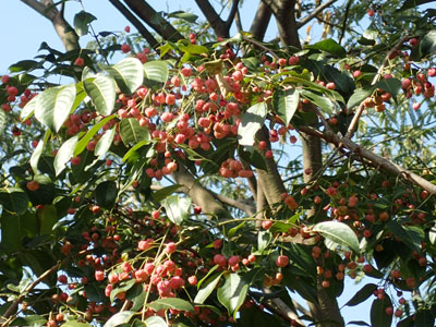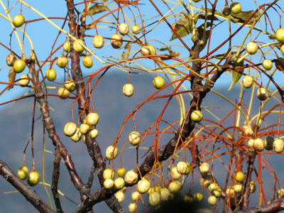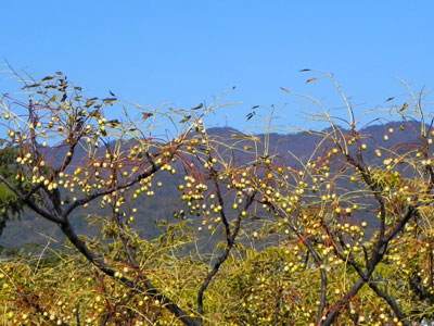 11/25 陽光緑地ではサクラはほとんど落葉、センダンの実が見られました。