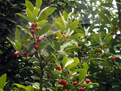 果実は核果。長さ1.5〜2cmの楕円形。 ホルトノキの実は下記のオリーブの実に似ている!? 花の様子はこちら! |