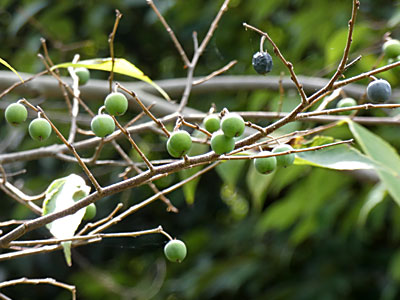 果実は液果。長さ8〜10mmの楕円形。暗紫色に熟す。 花の様子はこちらに。 |