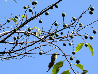 | 果実は核果。直径約1cmの球形。先端には4浅裂した柱頭が残っている。 | |