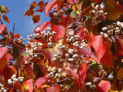 11/18 親水中央公園ではナンキンハゼの紅葉と白い種子が美しく輝いていました。