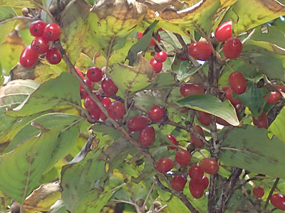 10/29 総合公園ではサンシュユの果実が赤く色づいていました。
