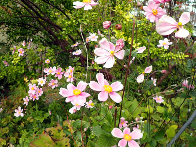 10/7 陽光町の教会の庭ではシュウメイギクの花がたくさん咲き出していました。