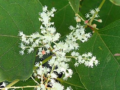 イタドリは雌雄異株。 葉腋に多数の白花をつける。 |