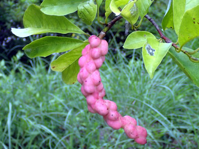 果実は袋果が集まった集合果。 樹木ウォッチング ハクモクレンのページもご覧ください。 |