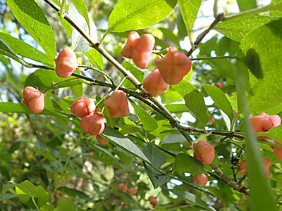 10/8 イモリ谷、奥池付近へ。マユミの果実を見ました。