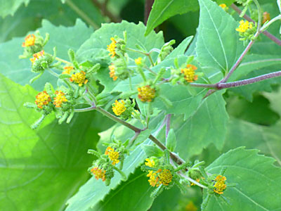 | 葉はてのひら状に5〜7裂。中央の裂片はとがるが、他の裂片の先が鈍い。雌雄異株。 | |