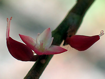 | 林のヘリなどに生える多年草、花は淡紅色、長さ3mm〜4mm | |