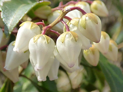 | 白い壺形の花が 下向きに多数 咲く。 | |