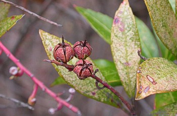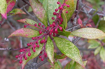 1/26 アセビの花芽が赤く目立っていました。果実も残っていました。