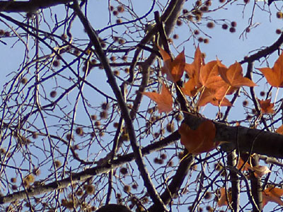 1/6 フウの木はすっかり落葉して、イガグリ状の果実が多くのこっていました。