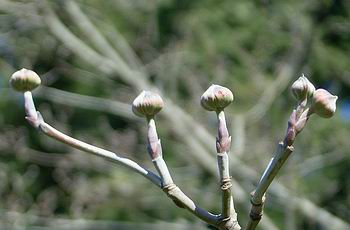 ネギ坊主のような花芽が 枝の先端で大きくなっていました。 花芽の下には 葉芽が2対 対生しています。 |