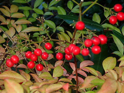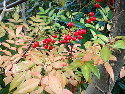 新年 あけましておめでとうございます。ナンテンの赤い果実が目立っています。